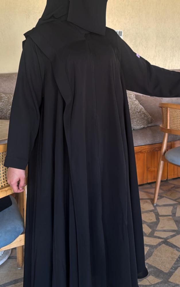 - طول العباية يؤخذ من الكتف الى أسفل الكعبين من الامام