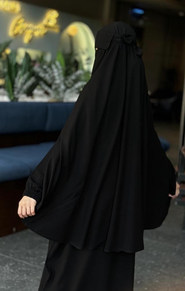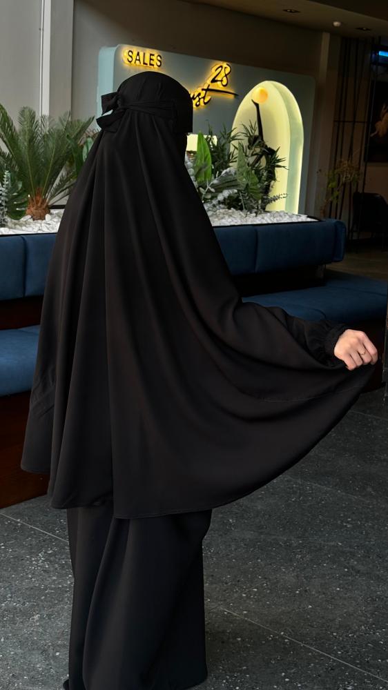 خمار أسود مايحتاج طرحة ثابته بجوده عاليه وقماش كوري
